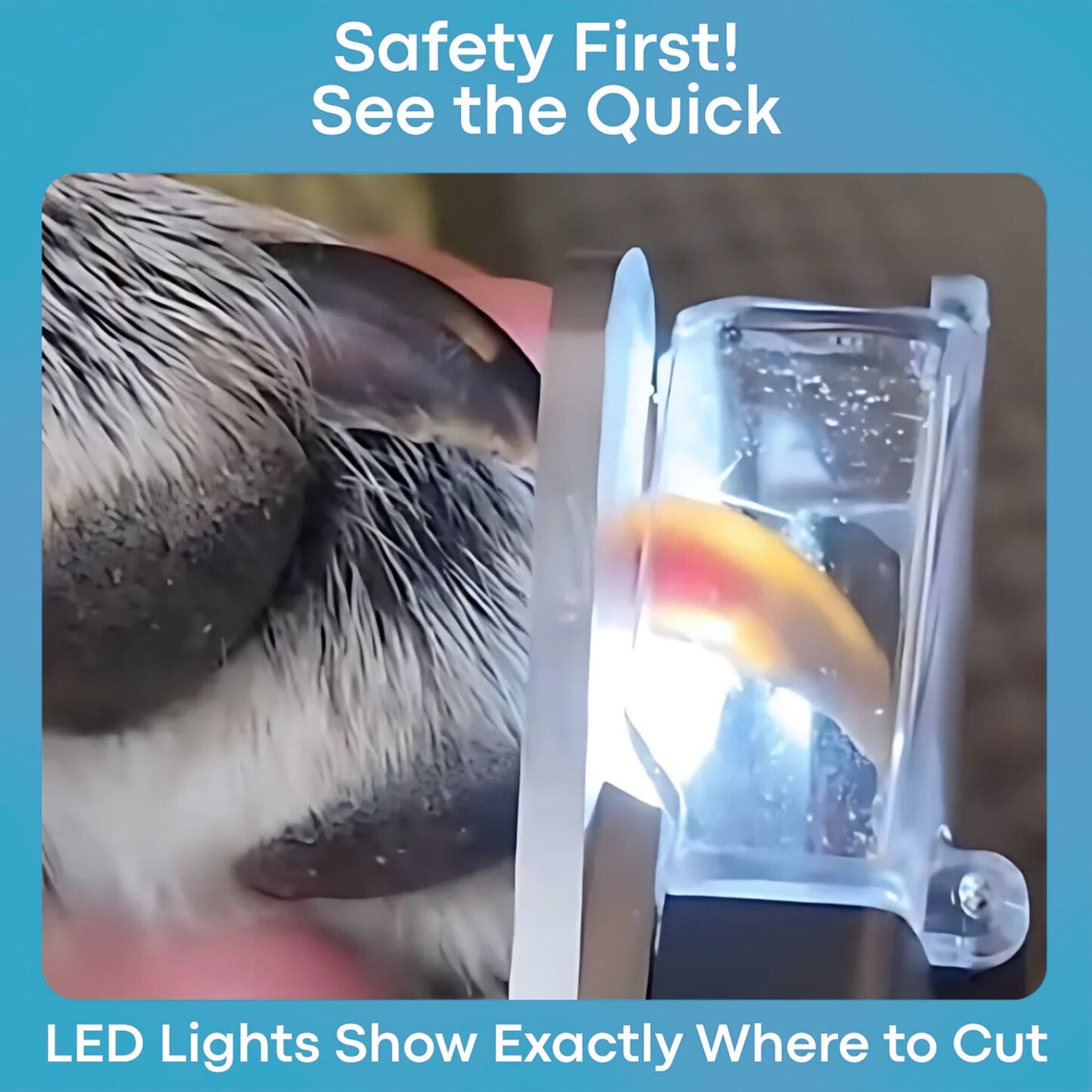 PawSafe™ uses dual LED lights to illuminate the sensitive area inside your pet’s nail that contains blood vessels and nerves (the quick) so you can’t cut painful deep cuts.